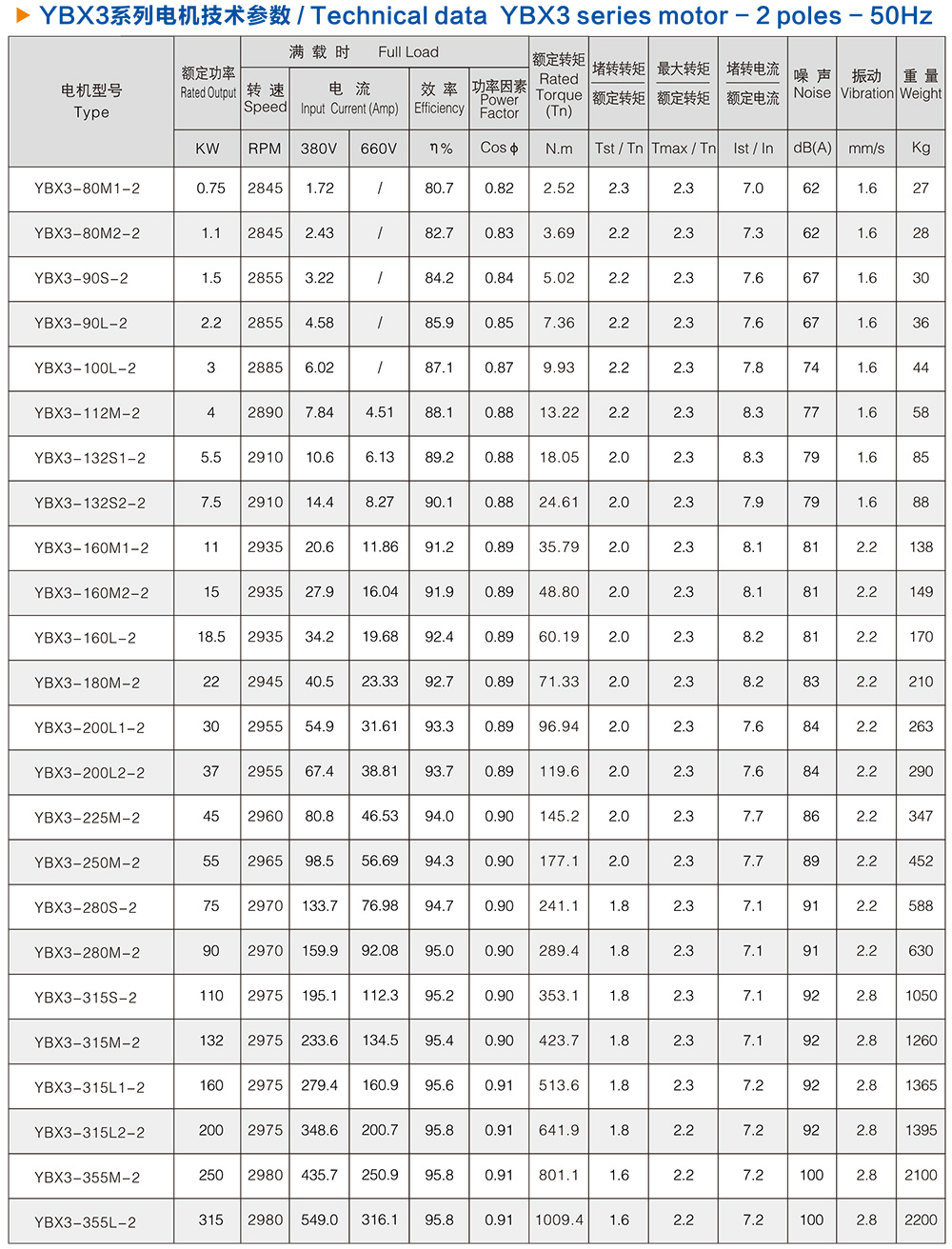 YBX3超高效防爆YBX3系列隔爆型三相异步电动机是我公司在参考行业统一设计基础上研制开发的全封闭、自扇冷、鼠笼式、隔爆型三相异步电动机的基本系列。效率执行GB18613-2012《中小型三相异步电动机能效限定值及能效等级》中的能效限定值标准,效率达到国家2级能效,且具有性能优良,使用安全可靠,振动、噪声比同类产品小的特点,符合环保要求。 YBX3系列电机防爆性能符合GB3836.1-2010 《爆炸性环境第1部分:设备通用要求》和GB3836.2-2010 《爆炸性环境第2部分:由隔爆外壳“d”保护的设备》的规定,制成隔爆型。 YBX3系列电机防爆标志分为:Exdl、ExdII AT4和Exd II BT4,其中Exdl适用于有甲烷或煤尘爆炸性气体混合物存在的煤矿工作面环境;Exd II AT4和Exd IIBT4适用于工厂用“类A级、B级,温度组别为T1、T2,T3和T4组的爆炸性气体混合物存在的环境。